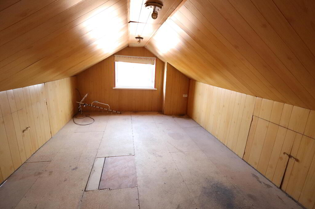 BEDROOM (3) 9' 11" x 7' 3" (3.02m x 2.21m) Access to floored roofspace with eave storage, panelled walls and ceiling (no building control or planning permission)
