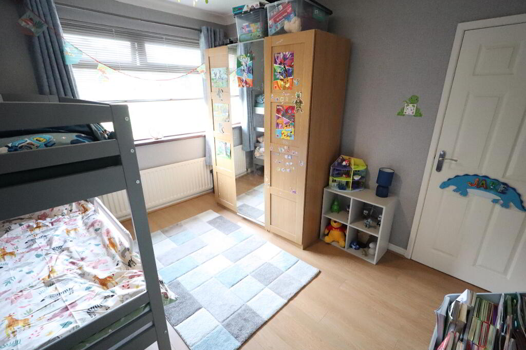 BEDROOM (3) 8' 8" x 8' 0" (2.64m x 2.44m) Laminate wood flooring, built in sliderobes, cornicing