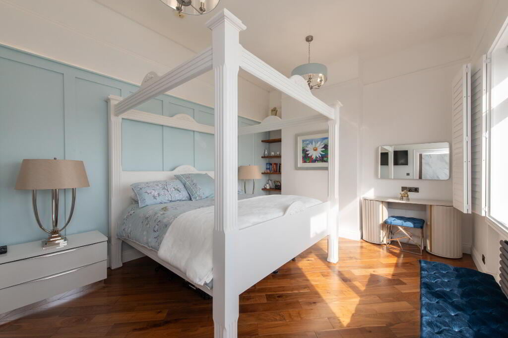 BEDROOM (2) 14' 9" x 12' 4" (4.5m x 3.76m) Feature polished wood flooring, panelling, magnificent sea views