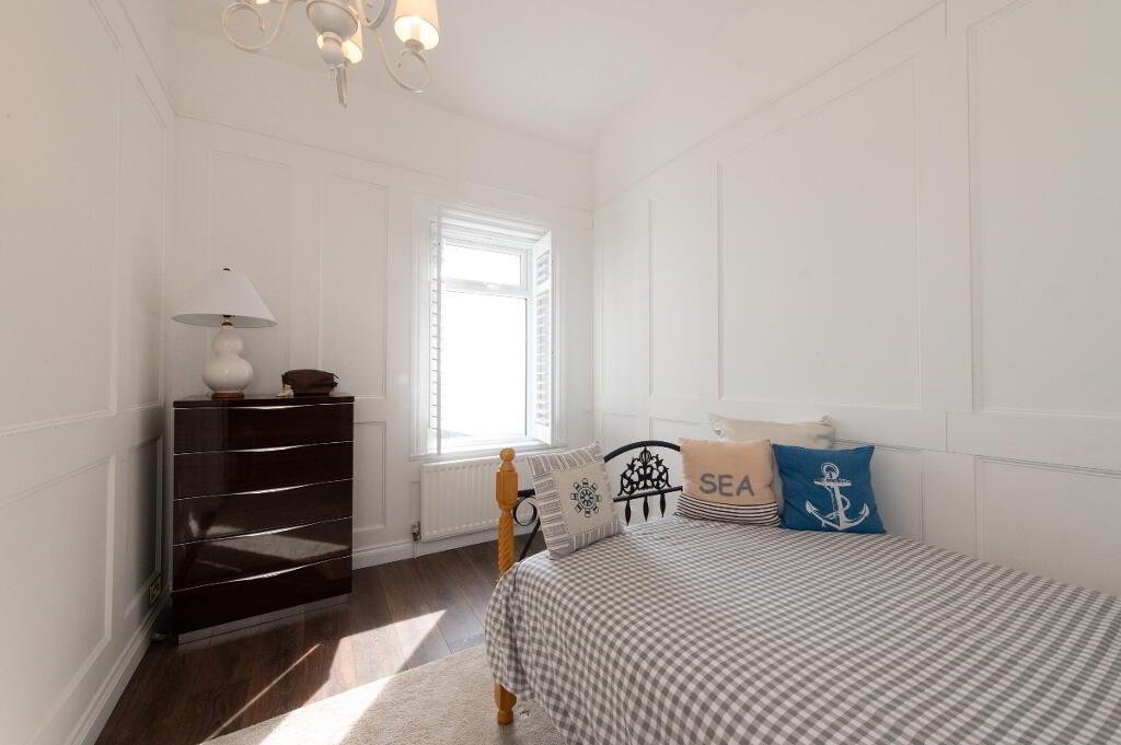 BEDROOM (3) 12' 6" x 9' 0" (3.81m x 2.74m) Laminate wood flooring, feature radiator, magnificent sea views