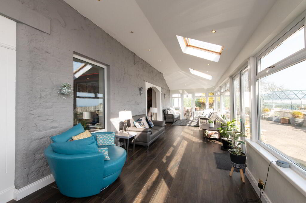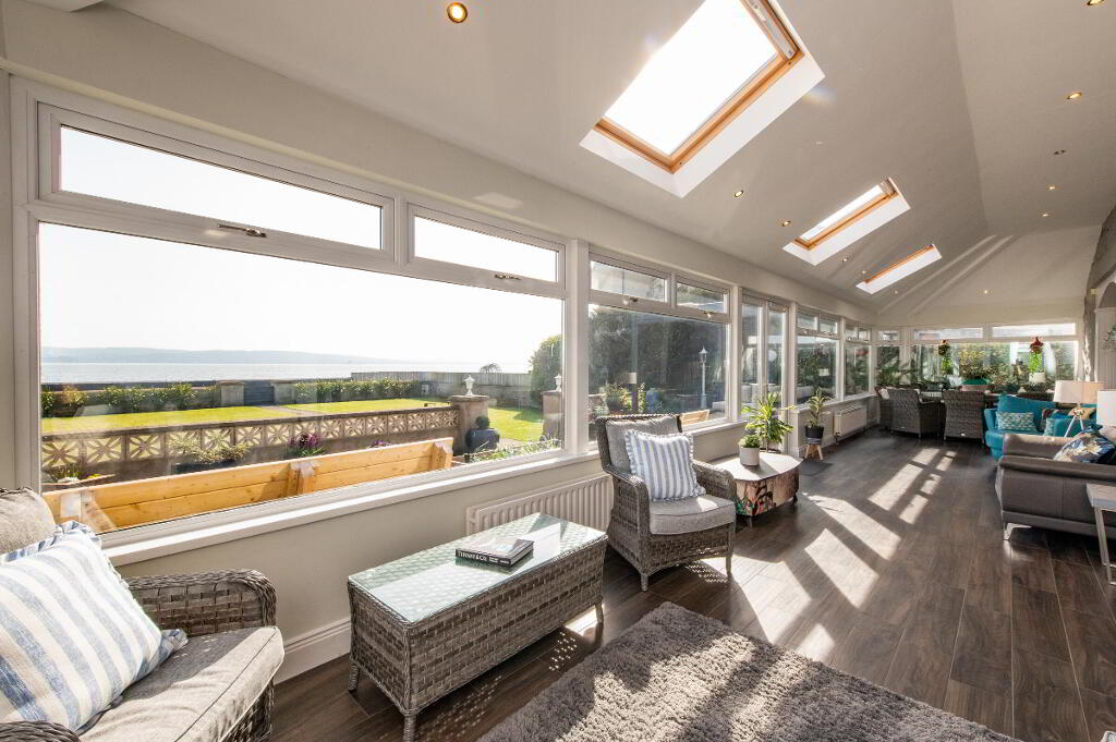FAMILY ROOM 24' 4" x 12' 0" (7.42m x 3.66m) Ceramic tiled flooring, panelling, magnificent sea views