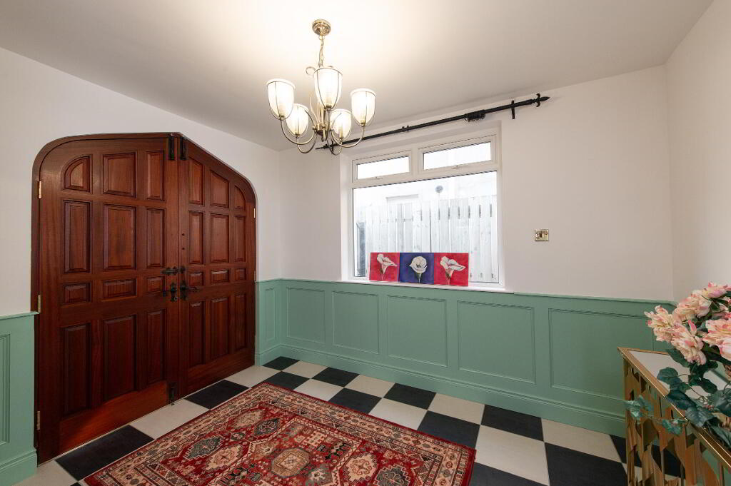 RECEPTION PORCH Ceramic tiled flooring, panelling, arched doors