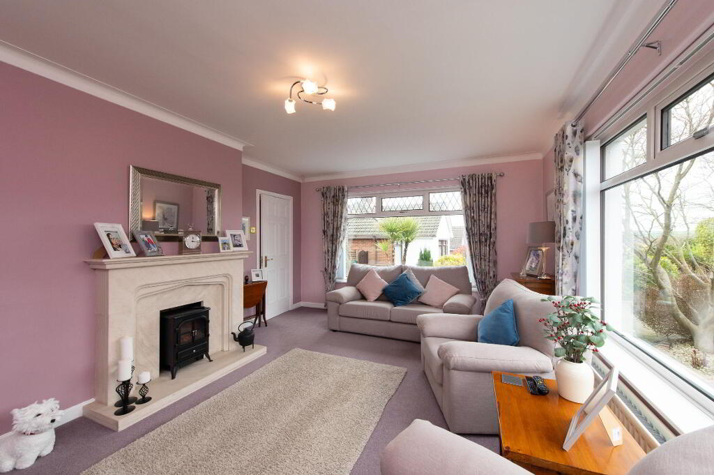 LOUNGE17' 0" x 12' 6" (5.18m x 3.81m) Feature marble fireplace. Cornicing. View of Carnmoney Hill and countryside.