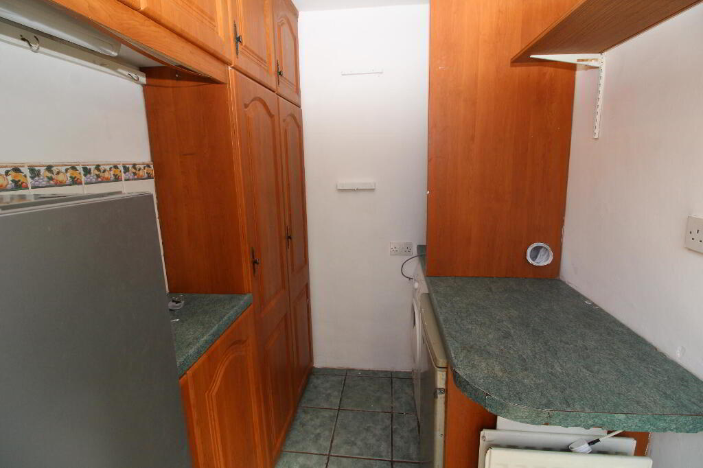 KITCHEN 15' 11" x 7' 6" (at max) or 4'5 (at min)(4.85m x 2.29m) Range of high and low level units, round edge worksurfaces, single drainer stainless steel sink unit with mixer taps, cooker point, extractor fan, wall tiling, ceramic tiled flooring