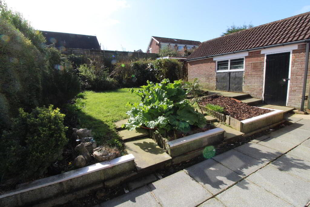 Rear: Enclosed garden to rear in lawn, paved patio area, plants and shrubs, area in chipped bark, outside light and tap, uPVC fascia and rainwater goods
