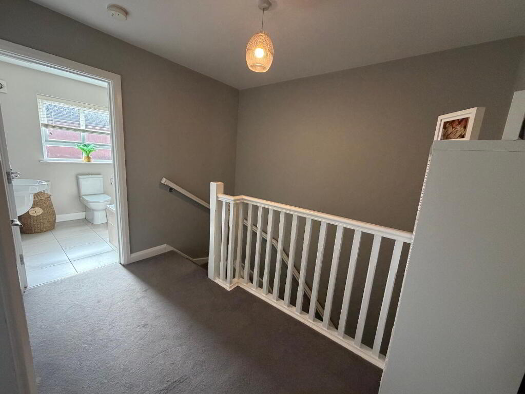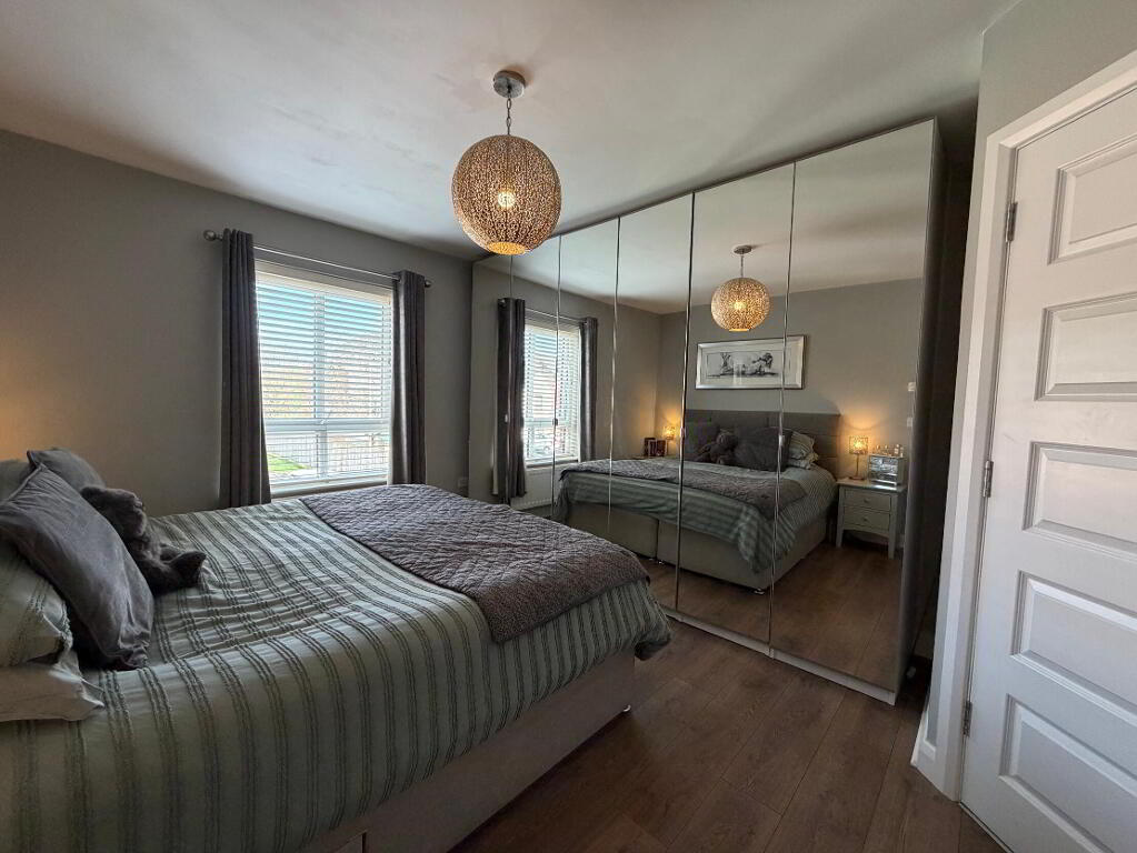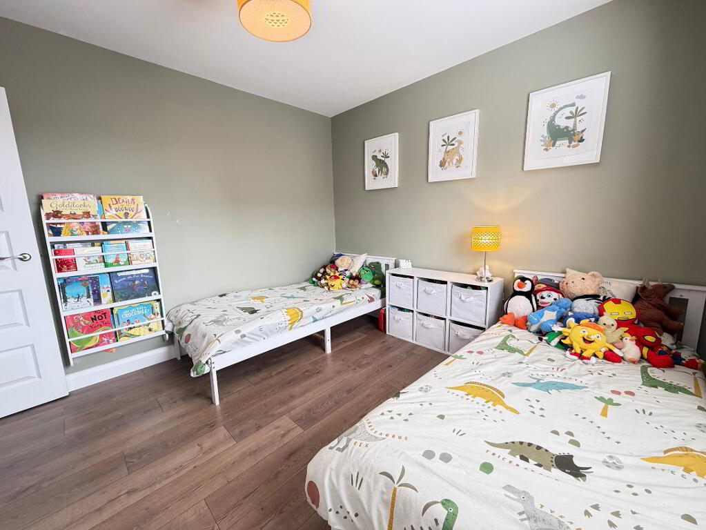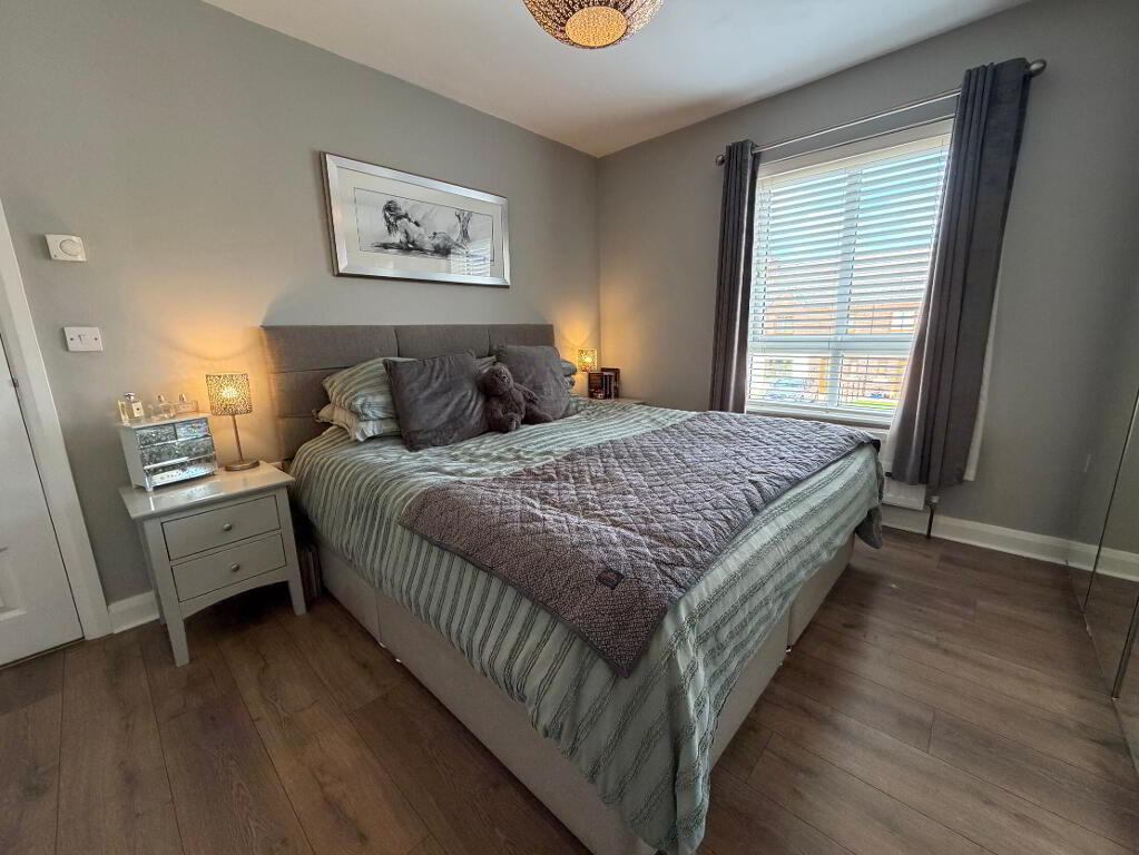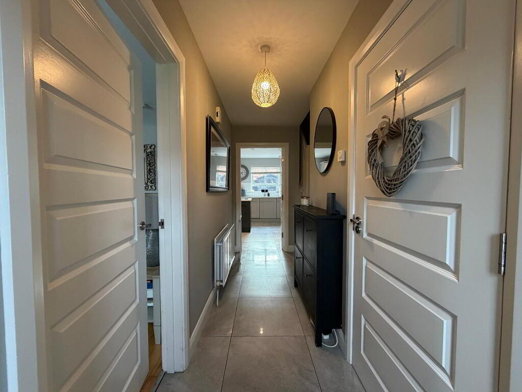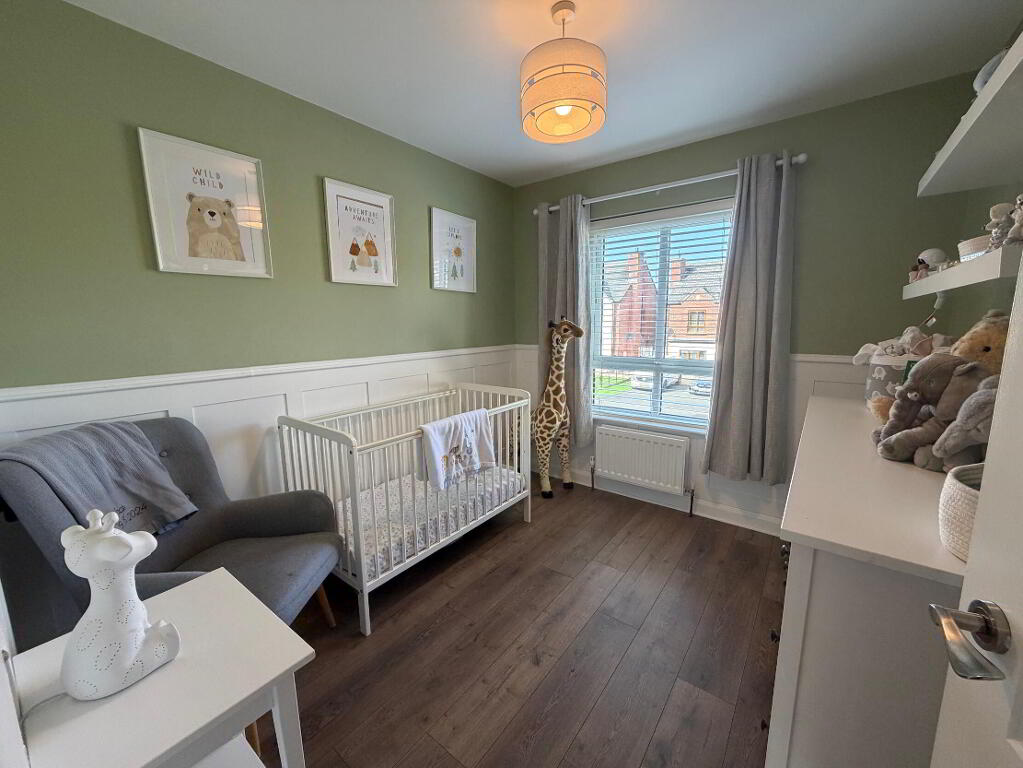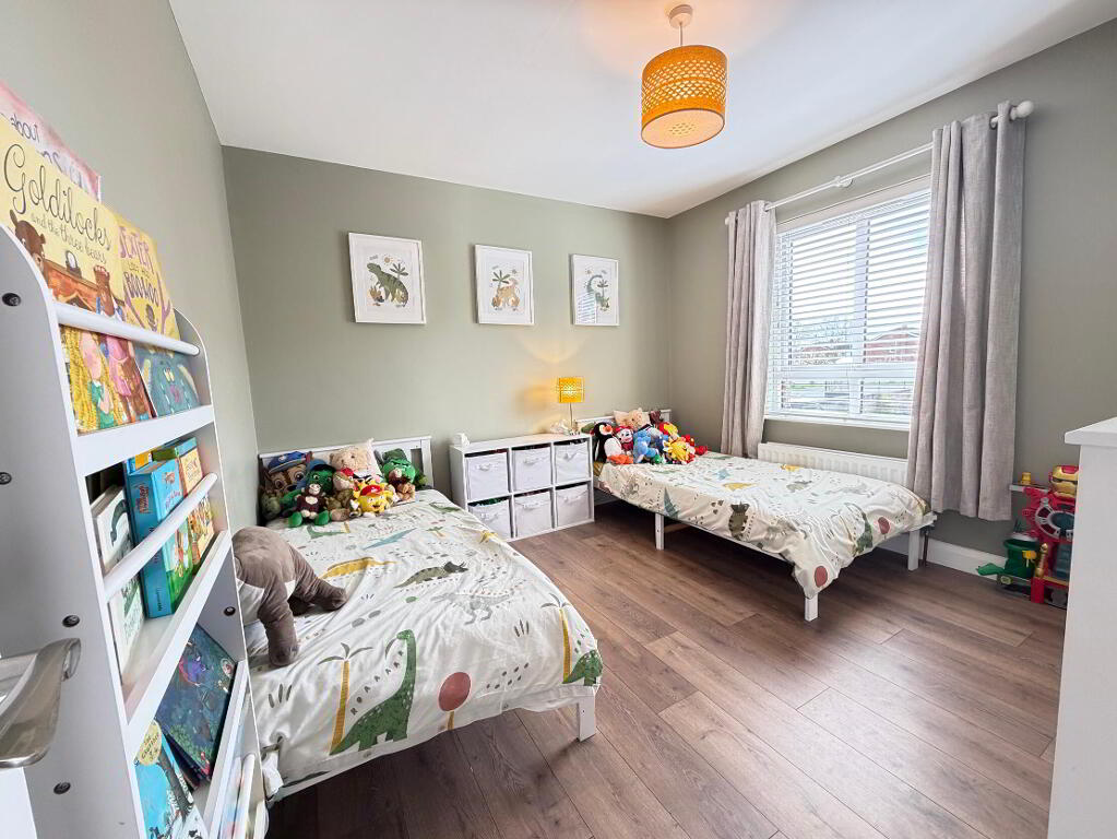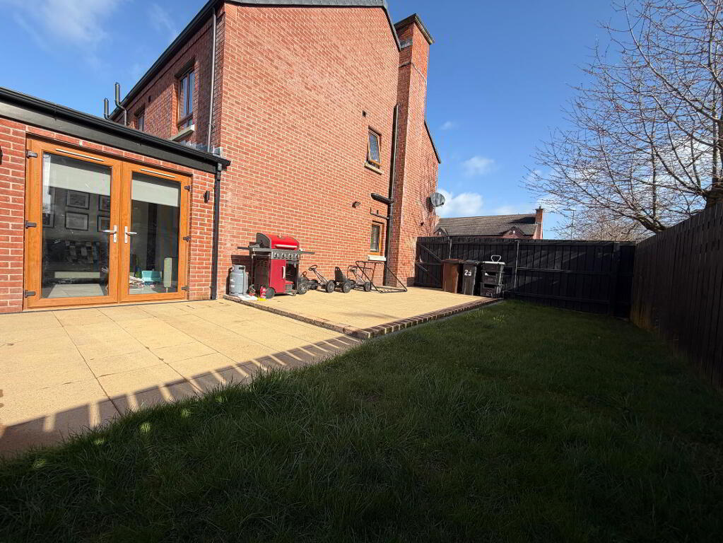 This spacious semi-detached villa offers generous ground floor accommodation, thoughtfully designed for modern family living. The welcoming lounge features a charming multi-fuel stove, creating a cosy and inviting focal point. At the heart of the home is a stylish shaker-style kitchen complete with integrated appliances and a central island unit. The kitchen flows seamlessly into an open-plan casual dining area, which in turn leads directly into a bright sun room, creating a superb open-plan layout ideal for both everyday living and entertaining. Externally, the property enjoys a private garden with a desirable southerly aspect — perfect for relaxing and making the most of sunny days. Occupying a quiet cul-de-sac position within a highly sought-after location, this impressive home will particularly appeal to young couples and families alike.