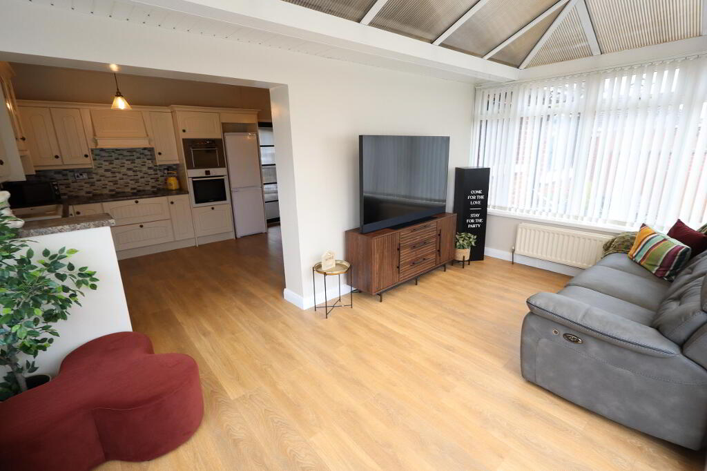 8 Woodford Park is a beautifully presented detached bungalow, perfectly positioned in a quiet yet highly convenient location. Offering three well-proportioned bedrooms, this move-in-ready home is ideal for a range of buyers. The property features a spacious open-plan kitchen and dining area, perfect for modern living, alongside a comfortable lounge and a bright conservatory providing additional versatile space. A contemporary shower room completes the interior. Externally, the generous plot includes a fully stoned frontage for low maintenance, a tarmacked driveway, and a lawned garden to the side. To the rear, there is an enclosed paved patio area, ideal for relaxing or entertaining. A detached garage adds further practicality. Early viewing is highly recommended.