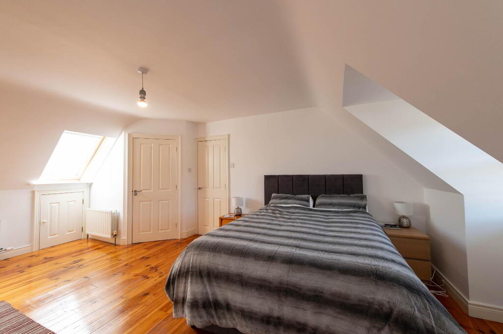 BEDROOM (1) 18' 10" x 13' 1" (5.74m x 3.99m) Solid wood flooring, Velux window, eave storage