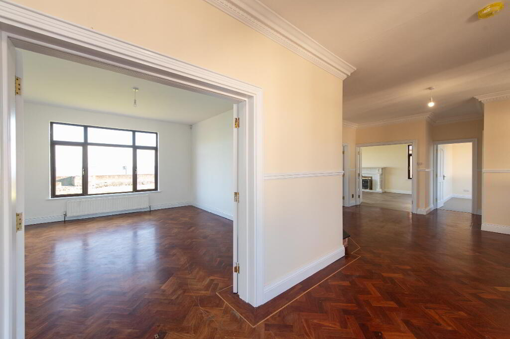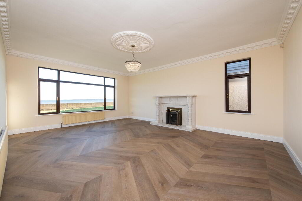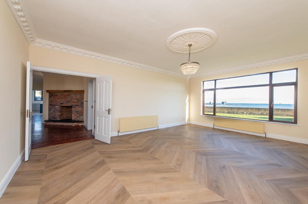 LOUNGE 21' 4" x 15' 9" (6.5m x 4.8m) Cornicing, center piece, Chevron LVT, outstanding views towards Belfast Lough, feature marble fireplace with open fire, open plan to: