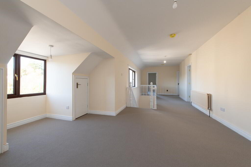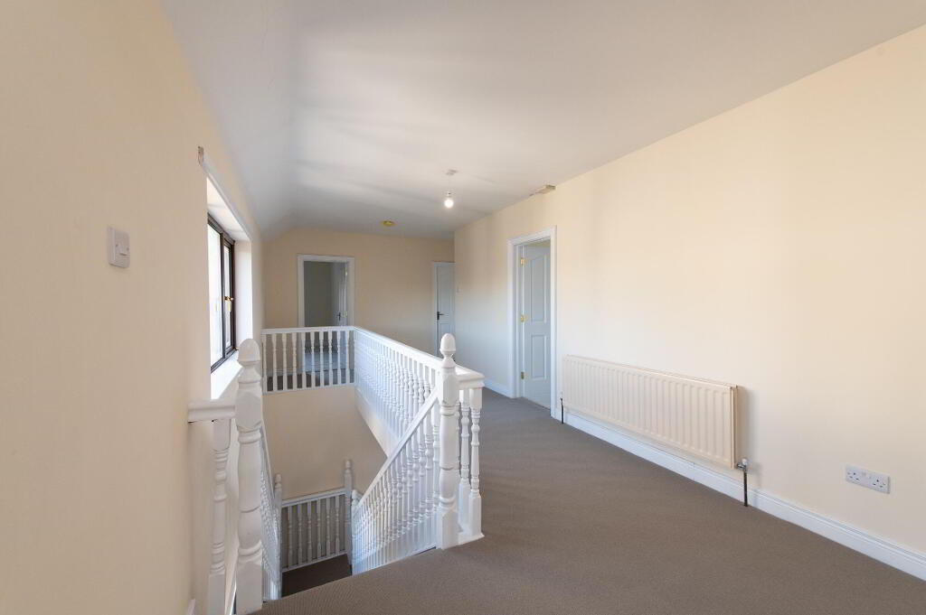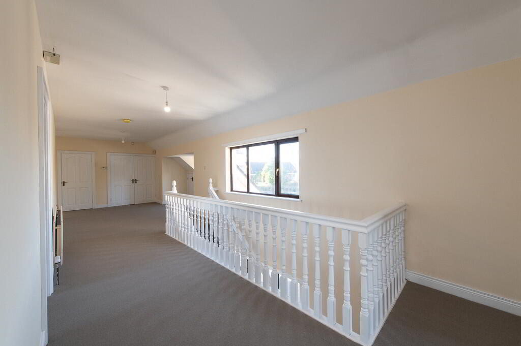 SPACIOUS LANDING Access to roofspace, double linen cupboard, hot press with hot water cylinder