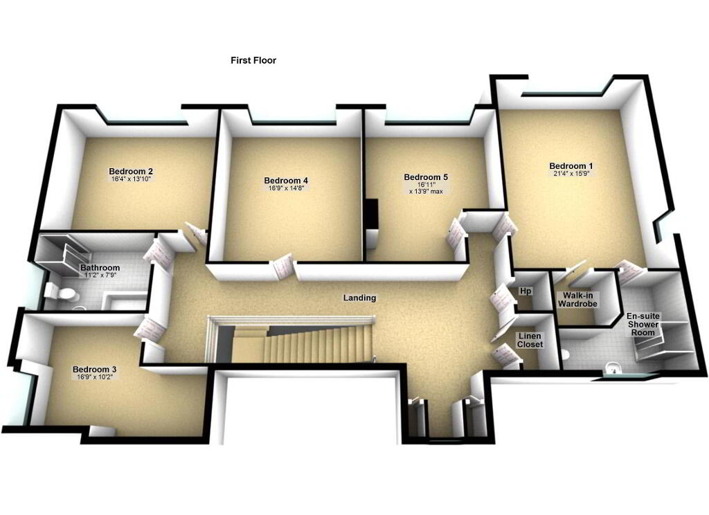 • 5 Bedrooms (master bedroom with ensuite shower room and dressing room)