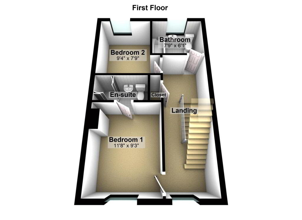 BEDROOM (2) 9' 4" x 7' 9" (2.84m x 2.36m)