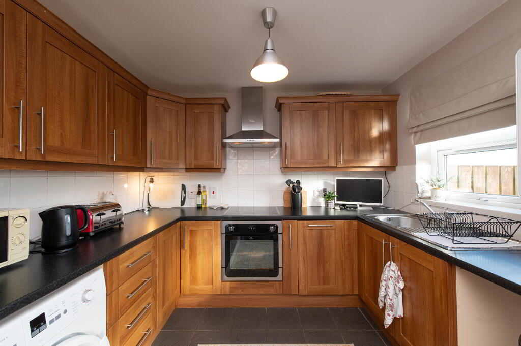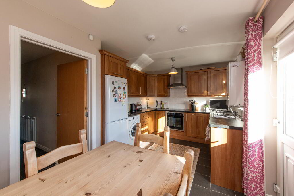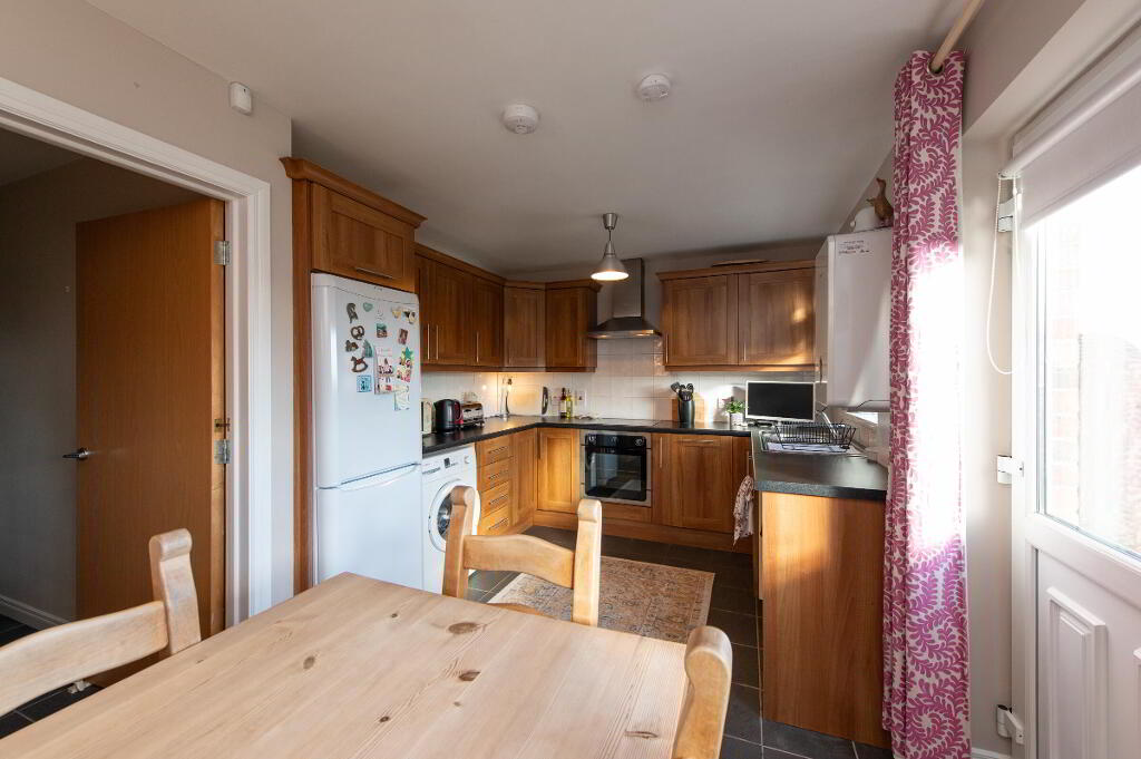 KITCHEN 15' 11" x 9' 8" (4.85m x 2.95m) Modern fitted kitchen with range of high and low level units, round edge worksurfaces, stainless steel sink unit with mixer tap, built in hob, built in oven, stainless steel extractor fan, plumbed for washing machine, space for fridge freezer, tiling, ceramic tiled flooring, Worcester gas boiler, plumbed for dishwasher.